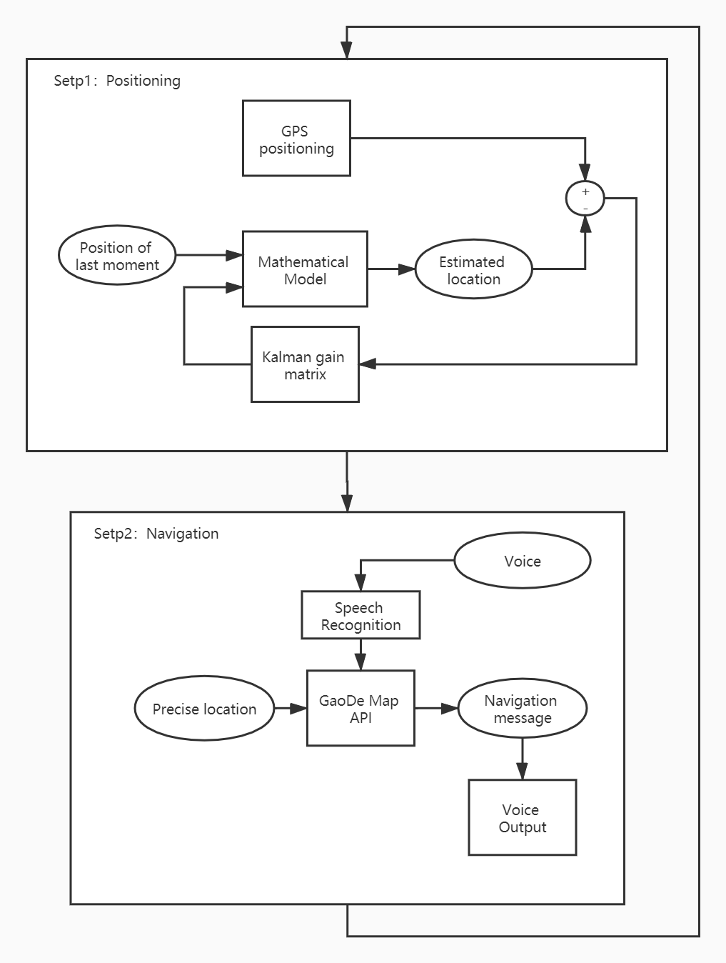 Eventually, our positioning & navigation algorithm flow is shown below: