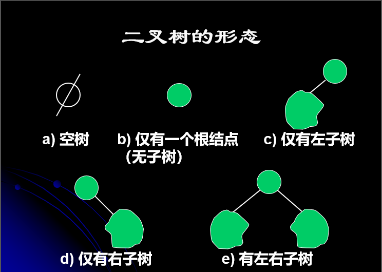 或为空(空二叉树,结点数为0),或由根的两棵互不相交的左、右子树组成,其左右子树又分别是二叉树。
