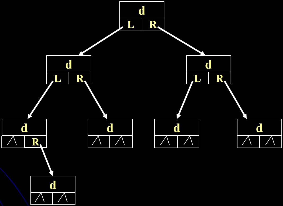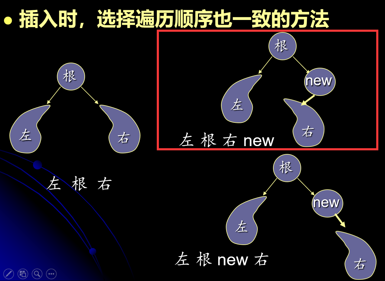 新元素小于k,且k左子树为空,则成为k的左孩子;